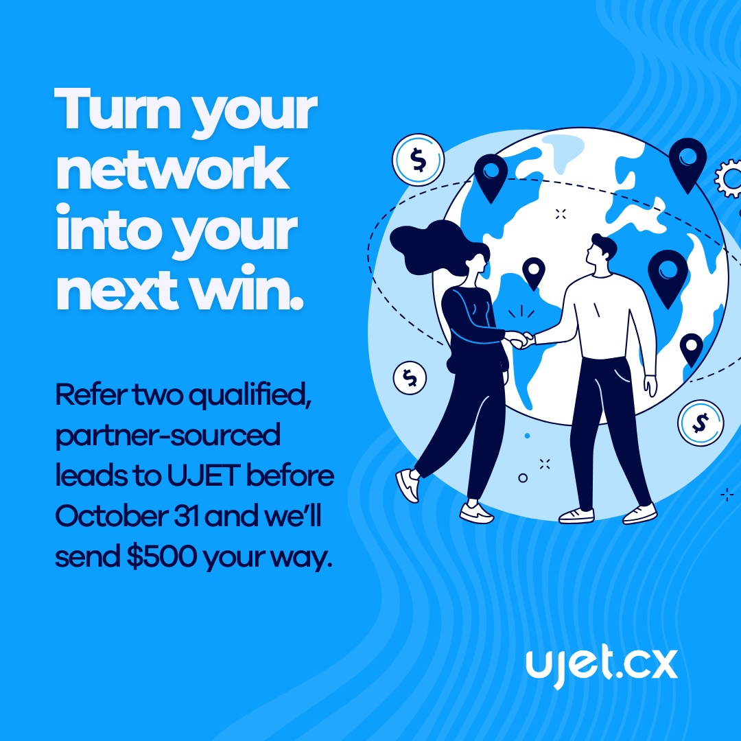Any partner who registers 2 qualified leads with UJET during this month will receive a **$500 gift card of your choice**.